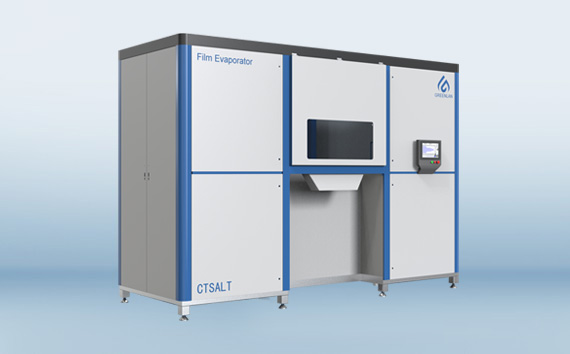 采用電能,無需蒸氣和冷卻水。在極限負(fù)壓下35℃低溫蒸發(fā),刮板持續(xù)對罐璧及廢液攪拌,阻止結(jié)晶物附著在罐壁,同時有效增加蒸發(fā)效率,最終將廢水處理成干燥固體結(jié)晶,自動排放干燥的固體結(jié)晶,獲得清澈的蒸餾液。